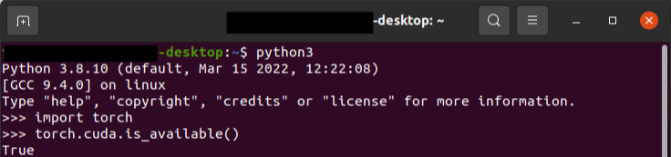 pytorch를 설치한 경우 터미널을 열고 python을 실행하여 torch 라이브러리로 cuda가 사용 가능한지 확인해본다.