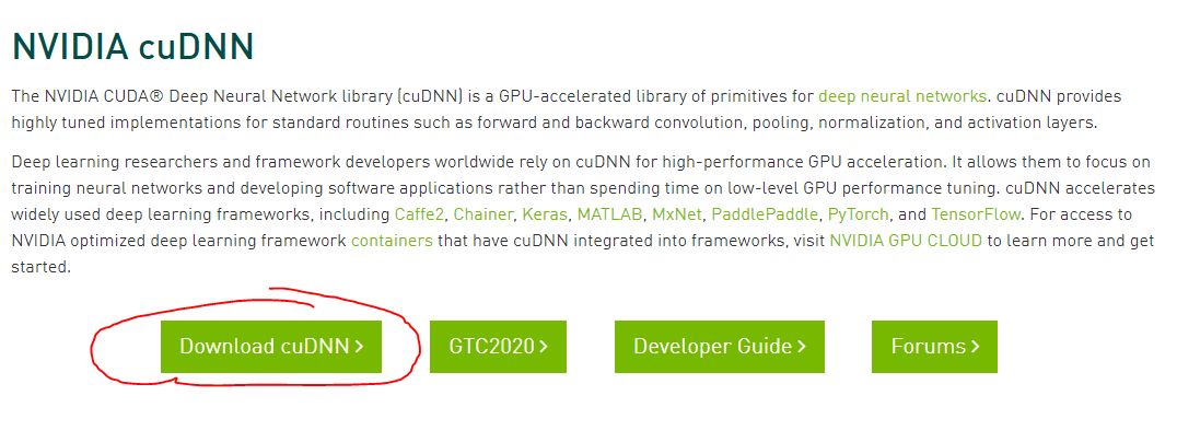 7. 구글에 cuDNN install 검색하고 cuDNN 다운 버튼 클릭 후 버전에 맞춰 압축파일 다운