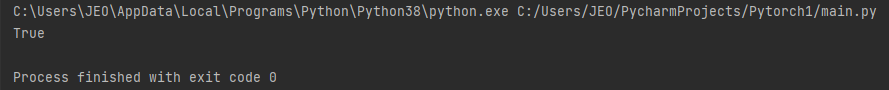 python코드를 아래와 같이 작성한 후 실행하여 True가 출력되면 CUDA설치가 완벽하게 된 것이다.